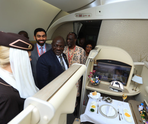 - Emirates tours General Edward Katumba Wamala, Uganda’s Minister of Works and Transportation around the retrofitted Boeing 777