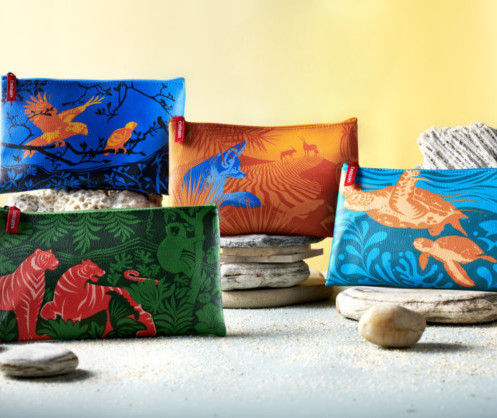 وتحتفي مجموعات مستلزمات السفر القابلة لإعادة الاستخدام من طيران الإمارات بتنوّع الحياة البرية على كوكب الأرض من خلال أربع بيئات طبيعية: البحار والسماء والغابات والصحراء. ويزدان كل غلاف برسومات فنية مرسومة يدوياً، ويتضمن بطاقة تعريفية تسرد معلومات عن الحيوانات المرسومة عليه.