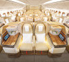 The refurbished four-class Emirates Boeing 777 features upgraded interiors with new design elements, including modern colour palettes, specially designed Ghaf Tree motifs, and wood finishes across all cabins