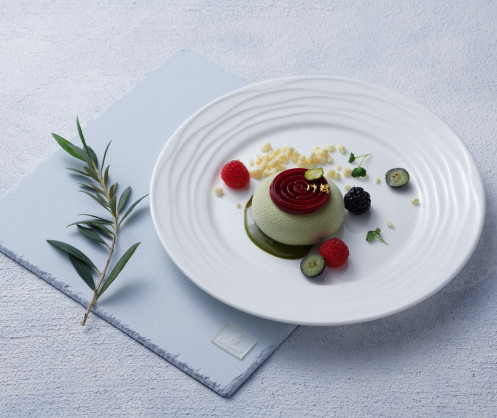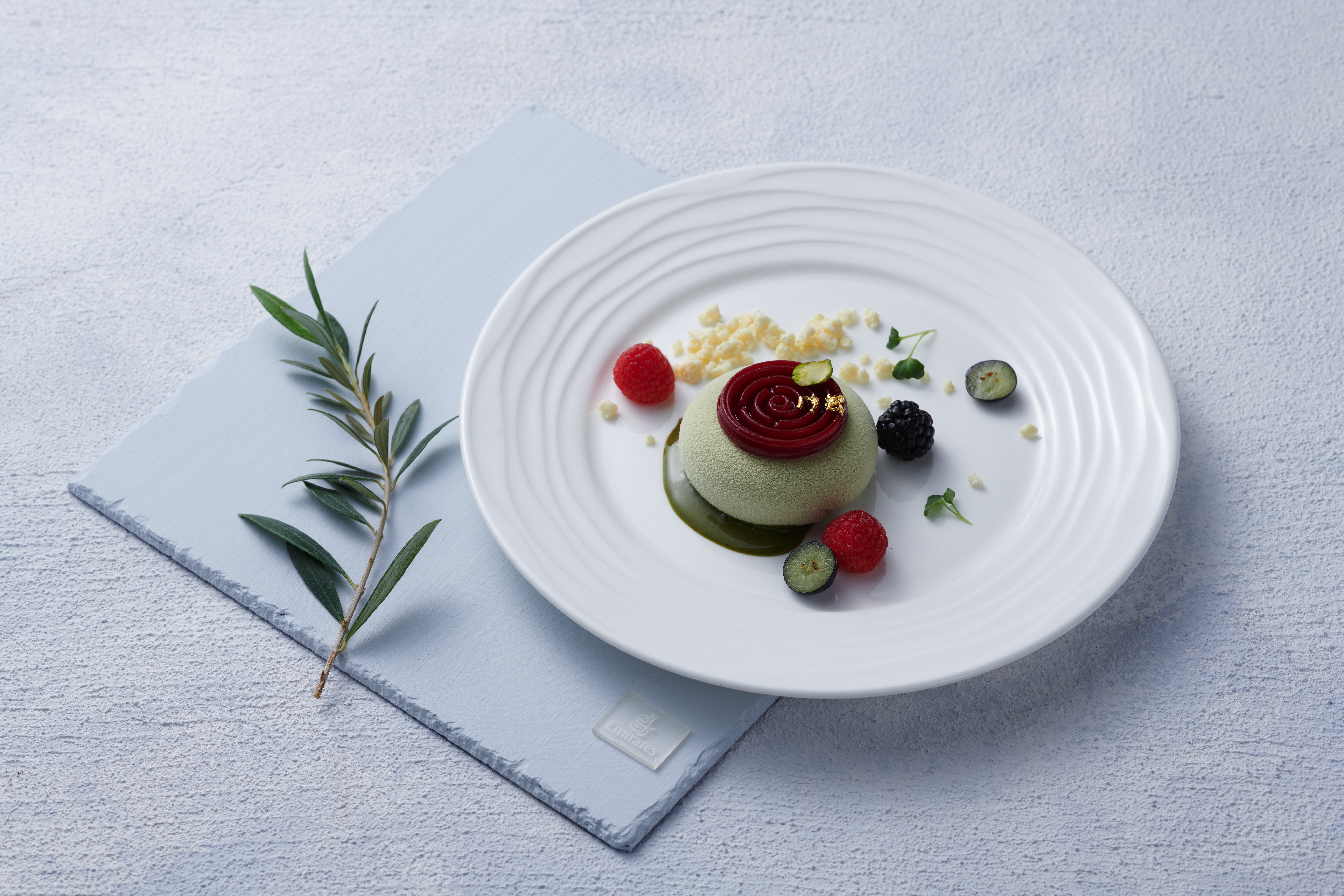 - Emirates vegan cuisine in the sky Pistachio raspberry mousse first class